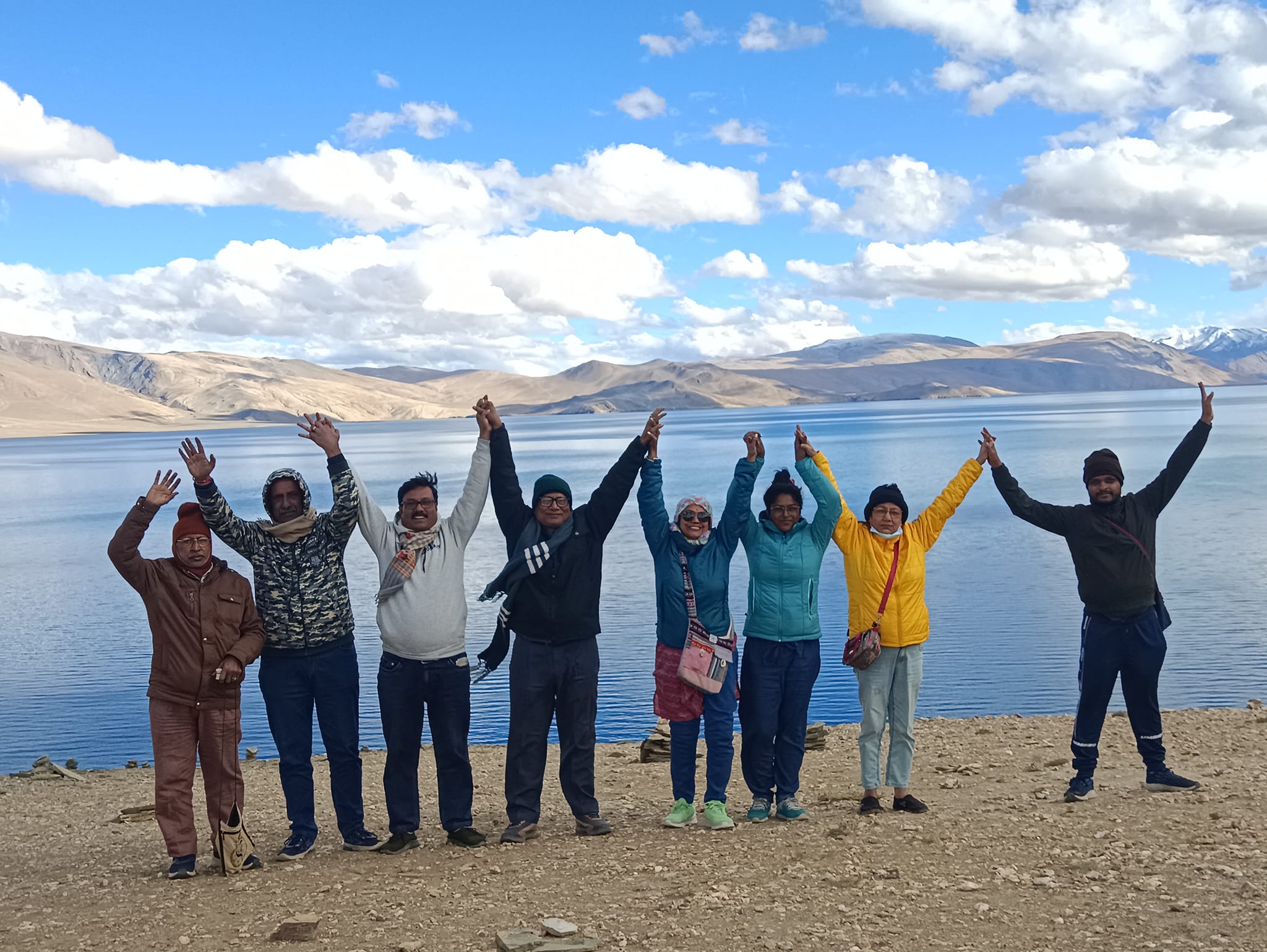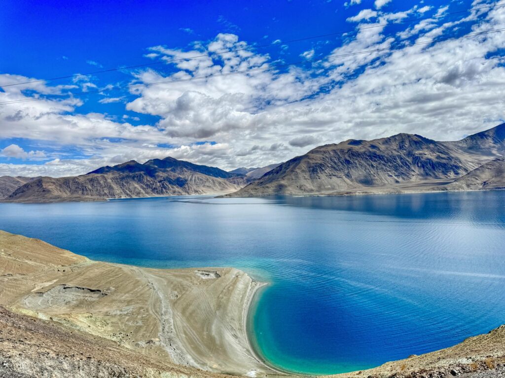 ককপিট থেকে ঘোষণায় জানতে পারলাম যে আমাদের বিমান এখন তিরিশ হাজার ফুট উচ্ছতায় ,আমাদের নিচে হিমালয়ের বিপুল বিস্তার। যতদুর চোখ যায় চূড়ার পর চূড়া ।ইতিমধ্যে সূর্যোদয় শুরু হয়েছে । শুরু হলো শুভ্র হিমবাহ ও গিরিখাতের ওপর রঙের খেলা । মুগ্ধ হয়ে দেখছি আর কাছের জানালা দিয়ে ছবি তোলার চেষ্টা করছি । কিছুক্ষনের মধ্যে তুষারধবল হিমালয় শেষ হয়ে তিব্বতীয় মালভূমির ধূসর পাহাড় দেখা গেলো । তার মধ্যে নীল শিরা উপশিরার মতো নদীনালা বয়ে গেছে । প্রবল ঝাঁকুনি দিয়ে খোচা পাহাড়ের ফাঁক দিয়ে আমাদের বিমান লেহ -র এয়ারপোর্টে ল্যান্ড করলো ।এয়ারহোস্টেস ঘোষণা করলেন বাইরের তাপমাত্রা ১০ ডিগ্রি সেলসিয়াস –